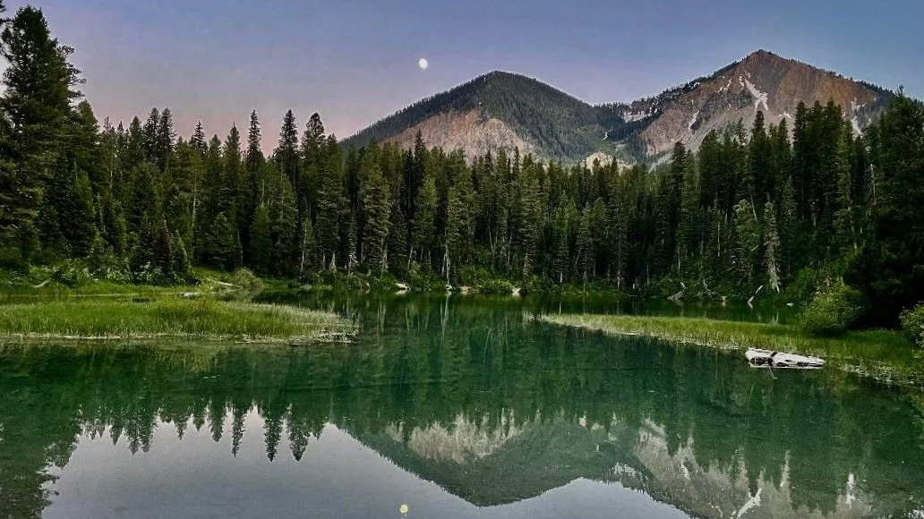 Murphy Lake in the Bridger-Teton National Park off Greys River Road - dirt most of the way and very washboardy the first 10 miles. Turn onto FS 10138 (best in a 4X4) . Camping, hiking, fishing and wildlife viewing opportunities surround you the entire drive. This stunning spot is also reachable via snowmobile during the winter…trust me, there will be Plenty of snow!