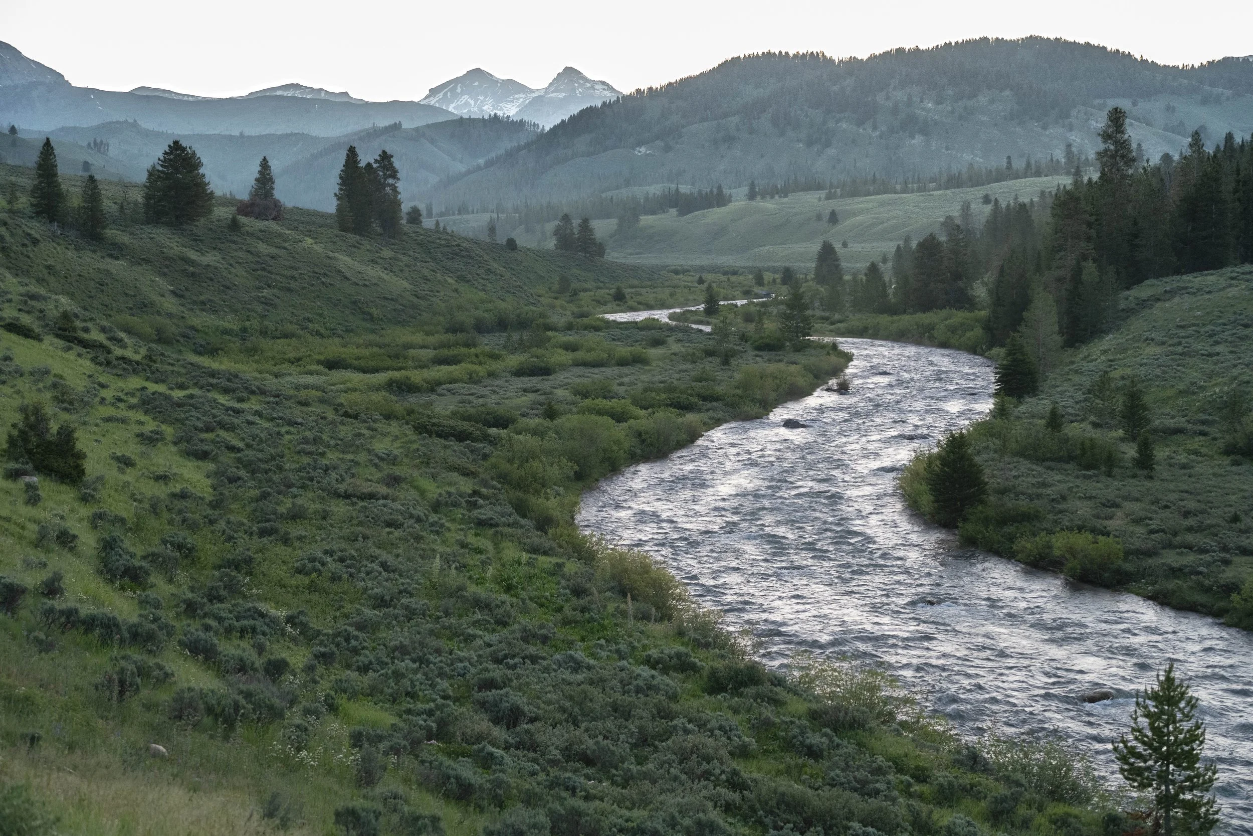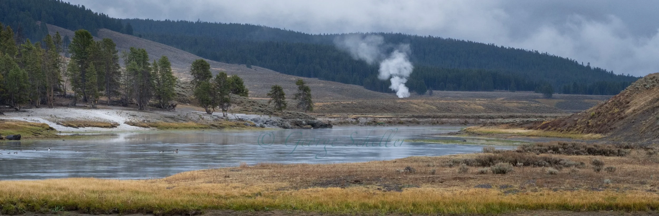 Scenes such as this one make a 2:45am wakeup and 3 plus hour drive well worth the effort. The falls in the Grand Canyon of Yellowstone were my intended destination but shortly after entering Hayden Valley this view grabbed my attention. The rain was stopping, the fog had pretty much lifted and the rising steam and white river banks jumped out at me. The longer I stayed in place enjoying the view, the more I noticed. Bison were visible way off in the distance and eventually ducks swam past. Makes me wonder what other creatures I might have seen had I stayed longer. This was a typical, rewarding trip though Yellowstone