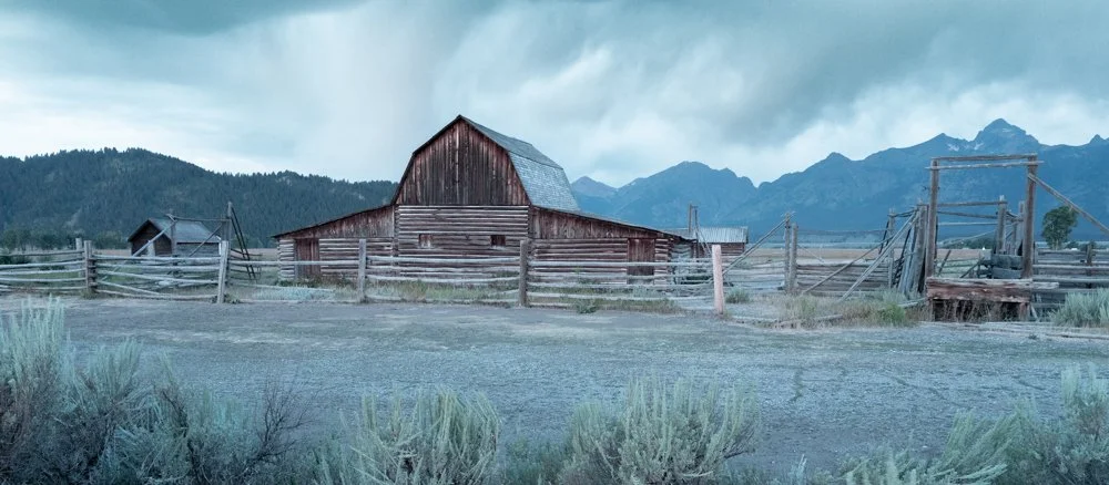 The Moulton Barn, built by brothers T.A. and John Moulton on what is now known as Morman’s Row in Jackson Hole. Few of the original structures remain, having been bought out by the Snake River Company years ago and eventually disappearing by the 1950s. Can you imagine spending everyday living and working in such surroundings ? Sign me up!