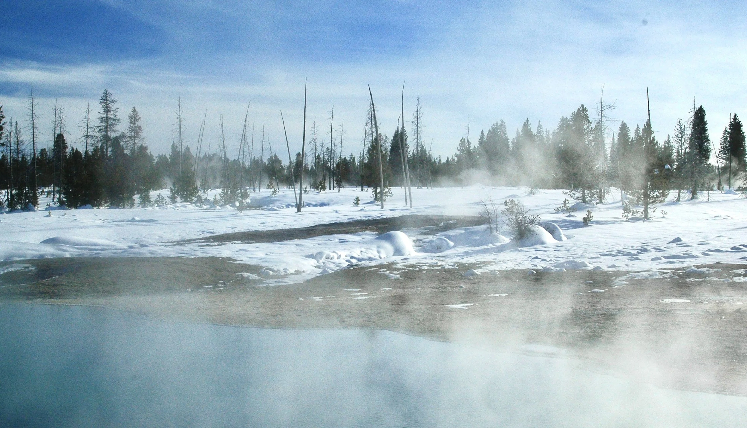 Just one of the many Yellowstone hot springs in the winter. Only two ways to visit in the winter…snowcoach or snow mobile. My choice has always been on a snowmobile. There are several places to book a tour in Jackson and they do make this a must do for visitors. Pay attention to the guides rules and cautions…I have never done this trip without encountering bison on the sled tour’s route of travel. These creatures are not pets, are not tame and must be treated with respect and caution. You are in their house now !