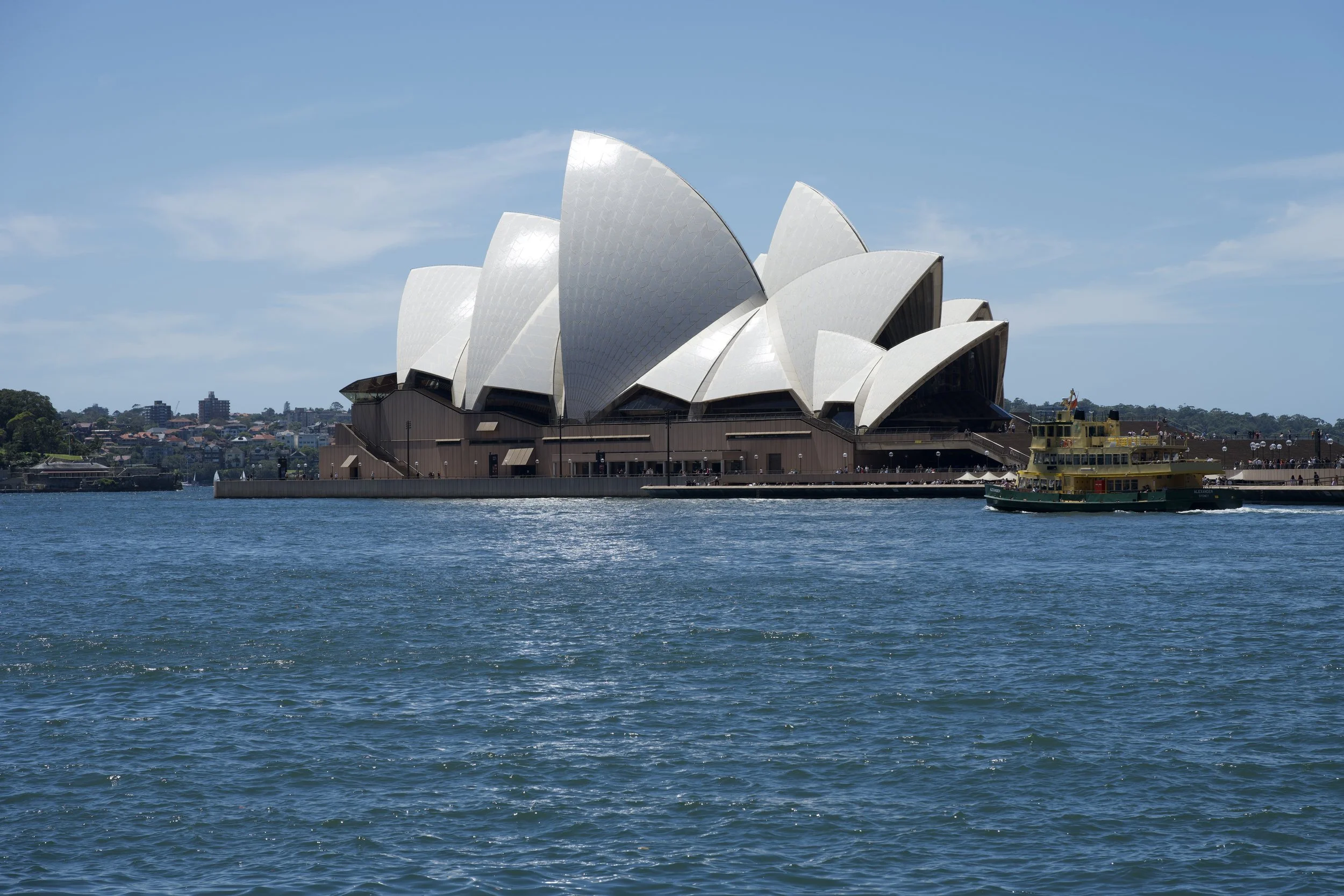 The Sydney Opera House . Located on one side of the Circular Quay , opposite the side of that body of water where the original exiles from England landed in Australia. A day wandering all around that area is so educational, relaxing and , simply put, tons of fun! Boat tours, many outstanding restaurants and more that a little history. PS..the subway / commuter train system in Sydney is probably the best Pat and I have found anywhere .